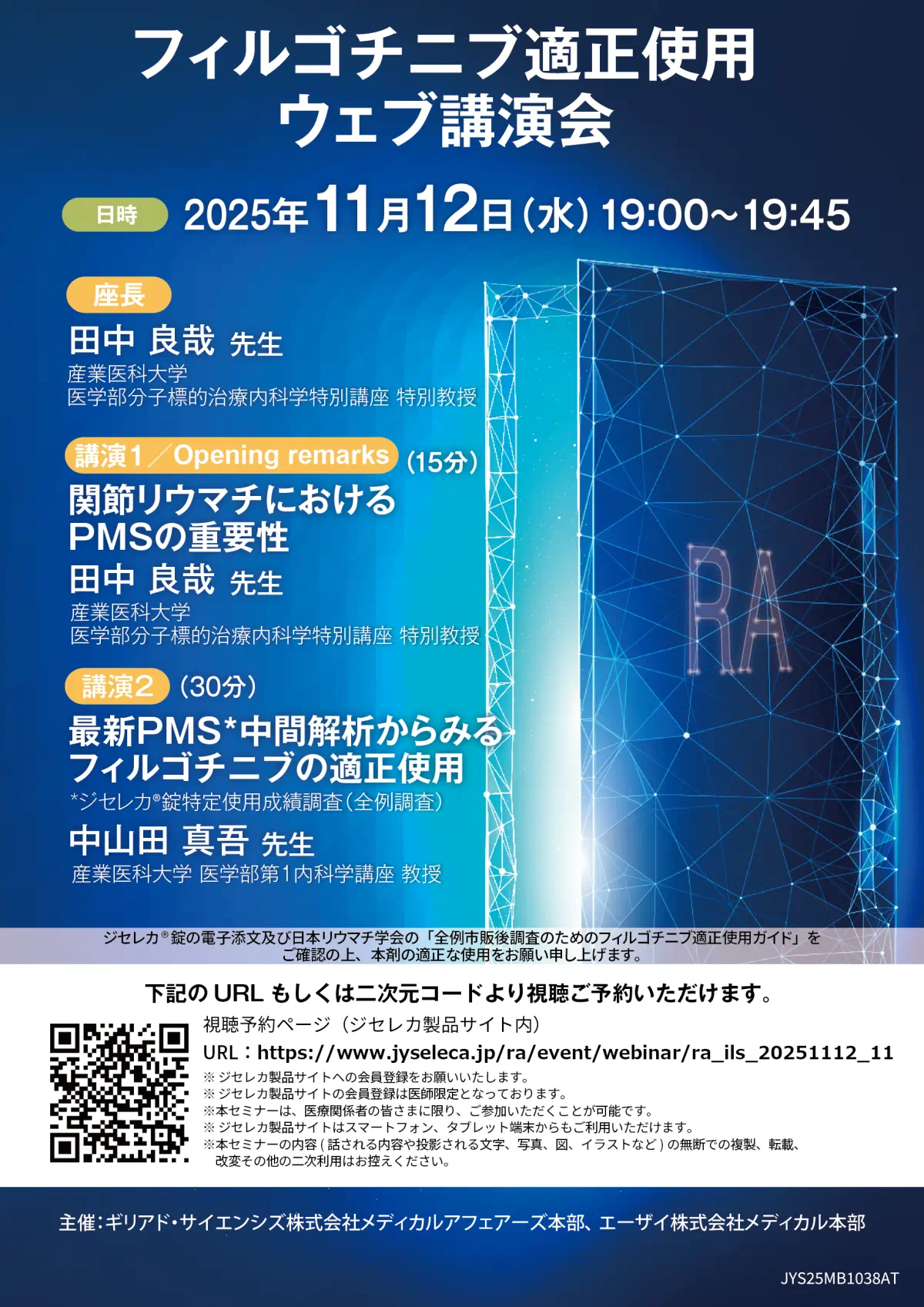 関節リウマチにおけるPMSの重要性/最新PMS中間解析からみるフィルゴチニブの適正使用