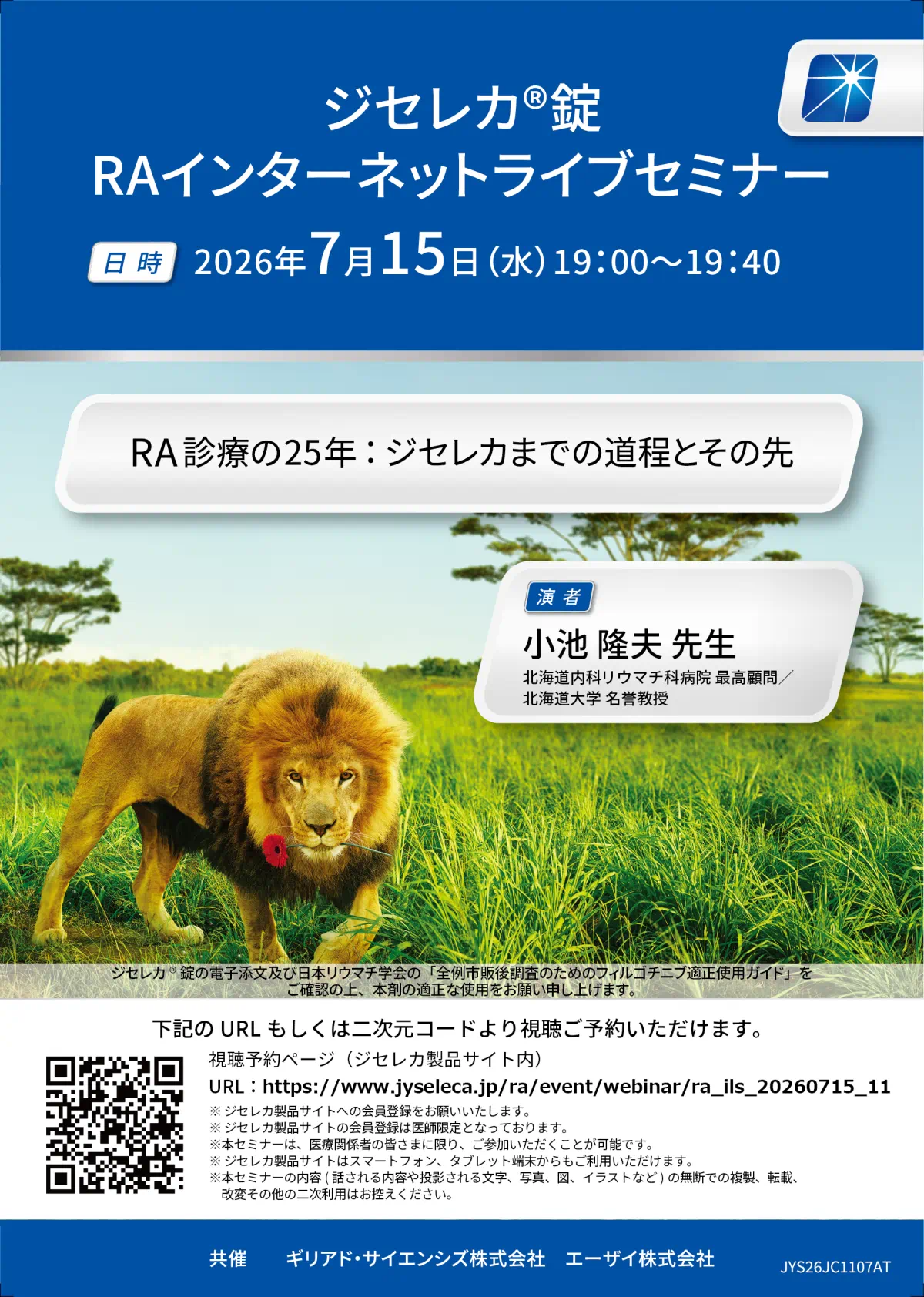 本講演では、RA治療の変遷を振り返り、ジセレカ登場までの道程と今後の展望について概説する。